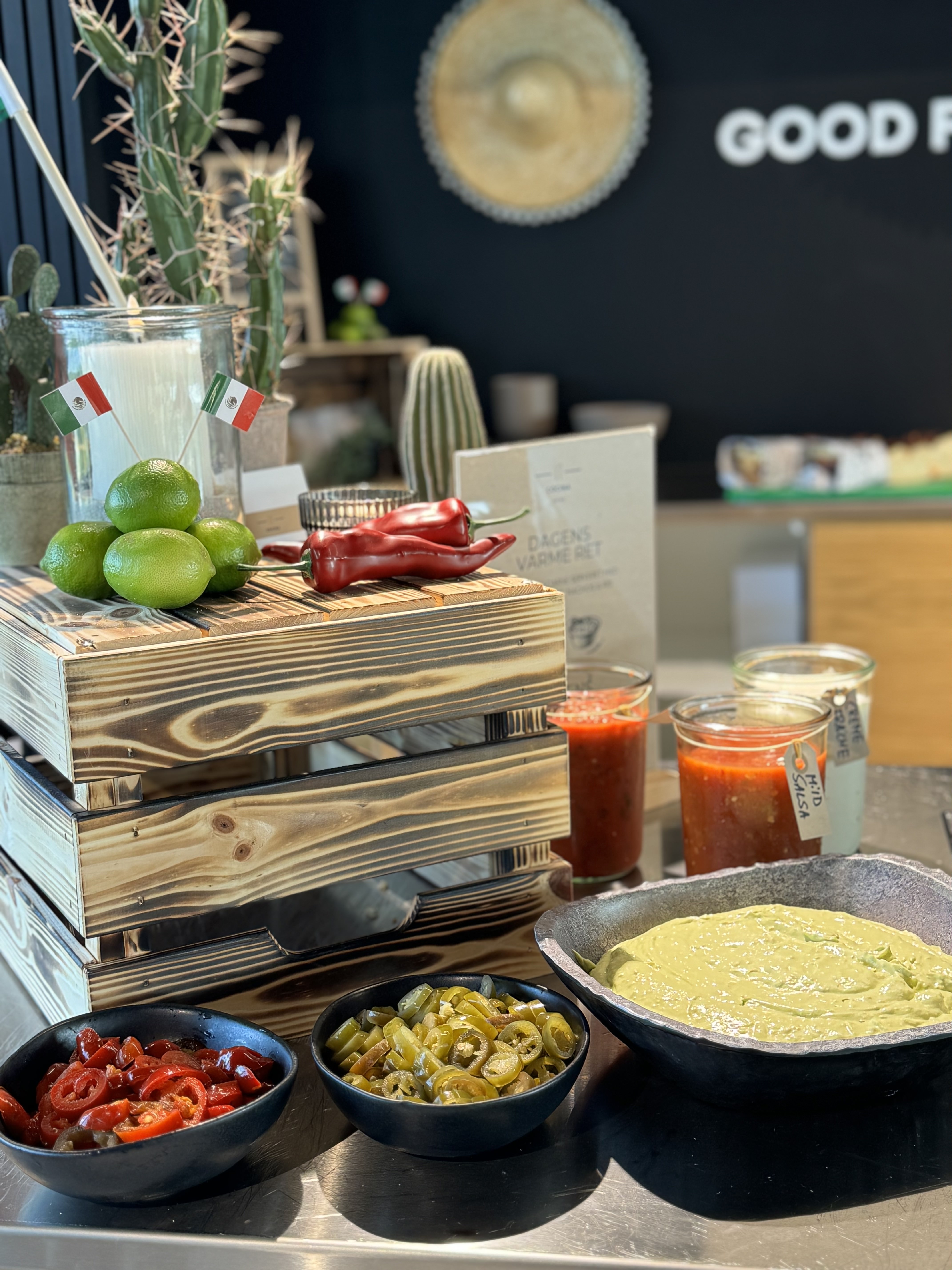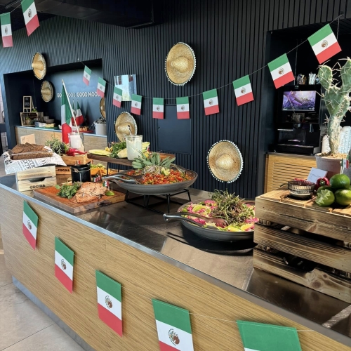Farver, smil og duften af krydderier! Når vi holder mexikansk temadag, bliver frokostpausen alt andet end almindelig. Tænk tacos, frisk lime, pulled pork og sprøde tortillachips – alt sammen serveret med et strejf af fiesta.